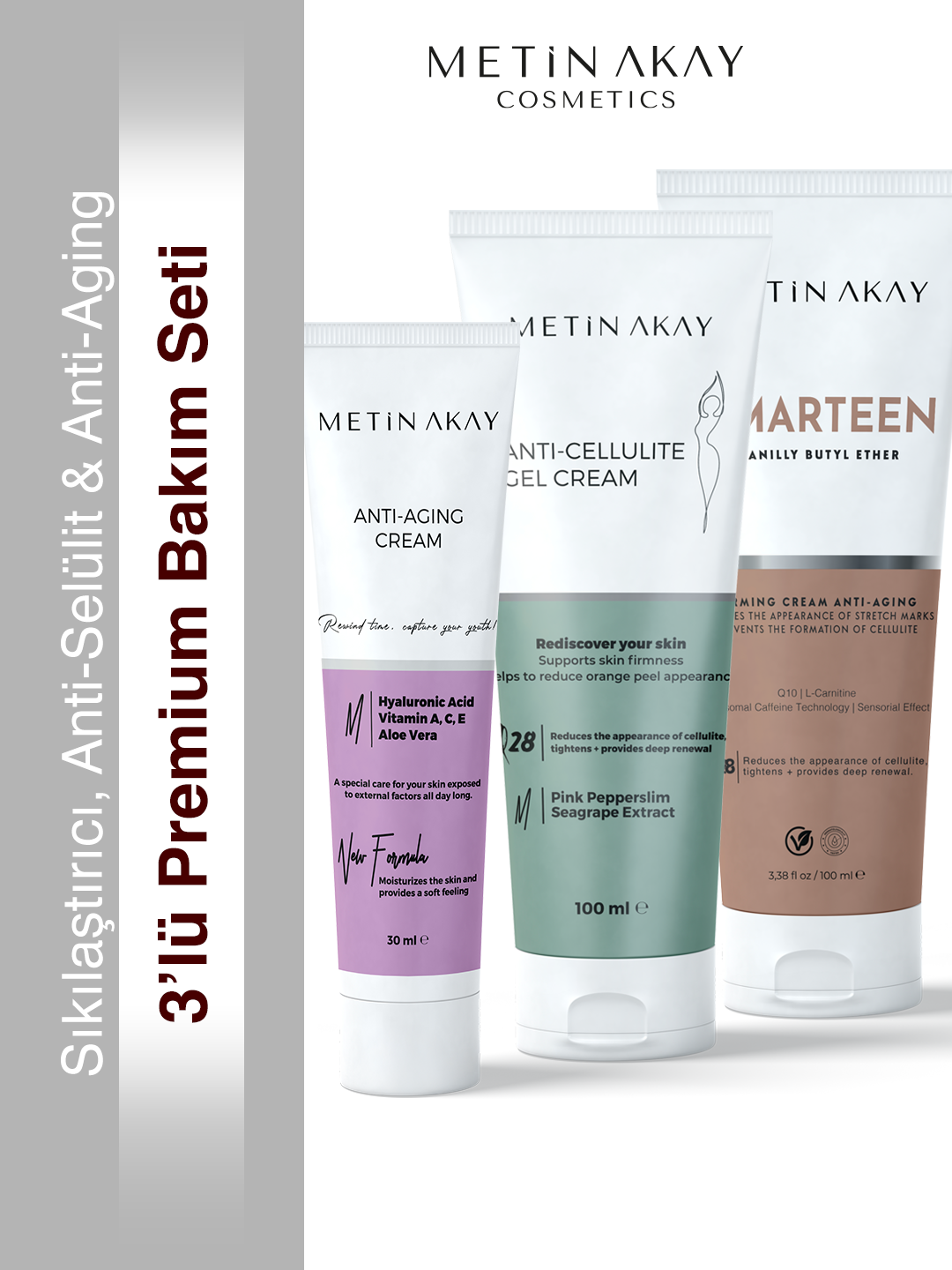 3’lü Premium Bakım Seti – Sıkılaştırıcı, Anti-Selülit & Anti-Aging